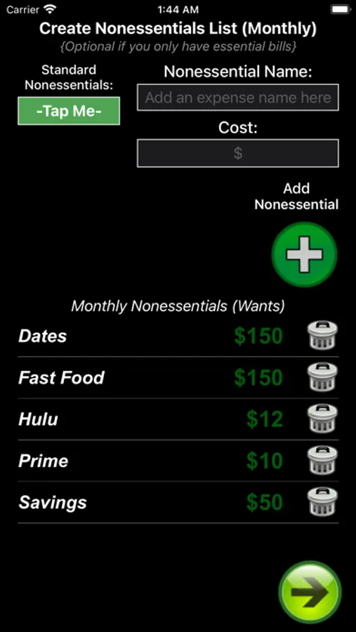 - Bills and Nonessential Expenses