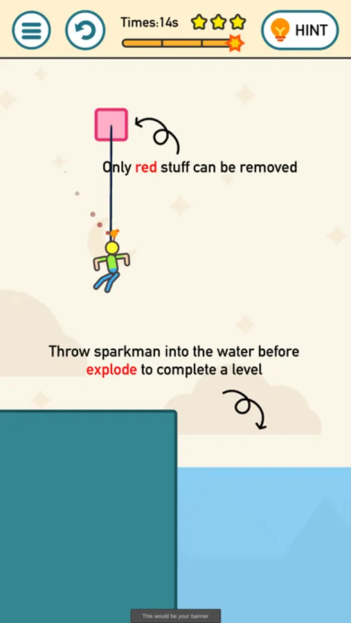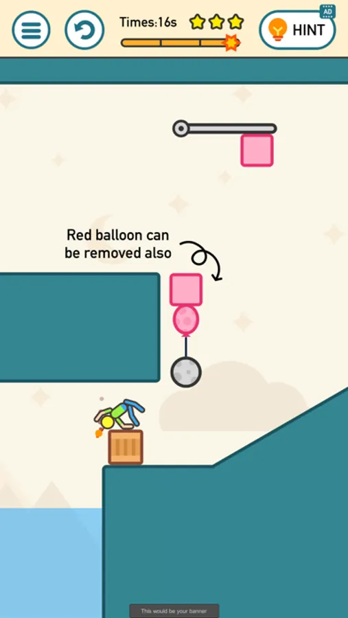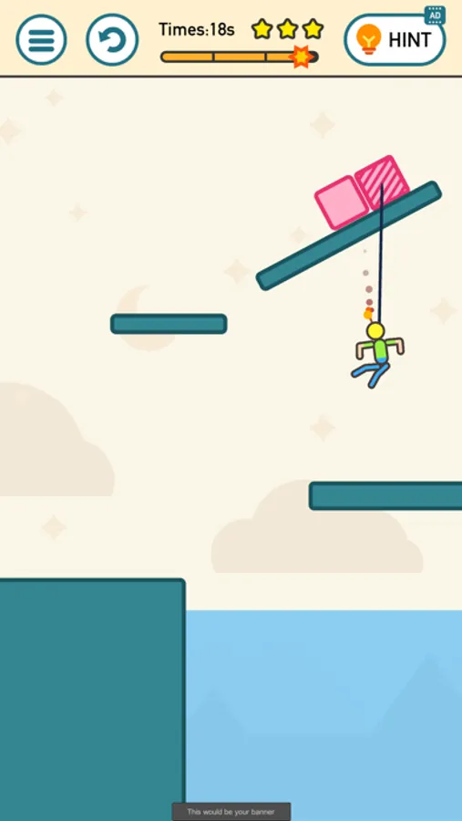 Sever the rope to solve the puzzle or break the blocks to swing your hero into safety. Don't let your hero explode!