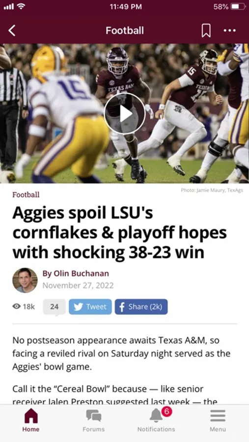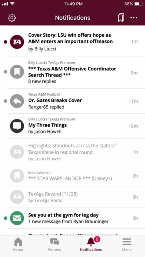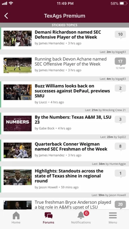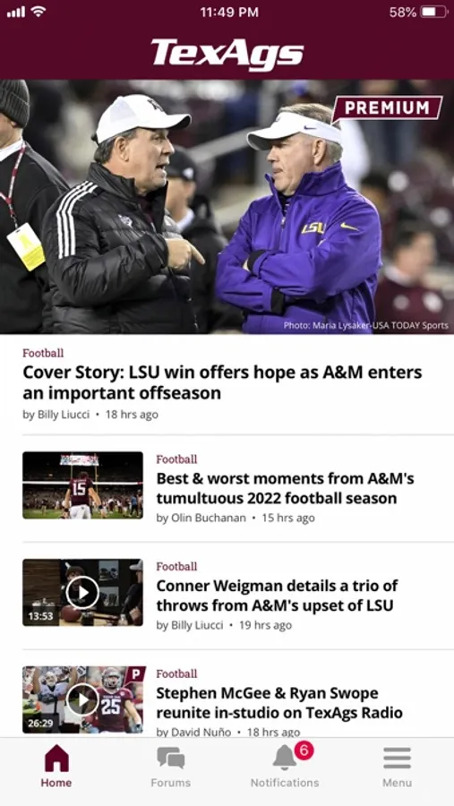 The TexAgs App is the pinnacle experience for Texas A&M sports fans and the Aggie community. Read, watch and listen as our industry-leading experts break down the ins and outs of Aggie athletics. With our custom notification system and improved user interface, TexAgs users now have access to the best way to stay up-to-date and interact with tens of thousands of Aggies across the world in the TexAgs community forums. Gig ‘em!