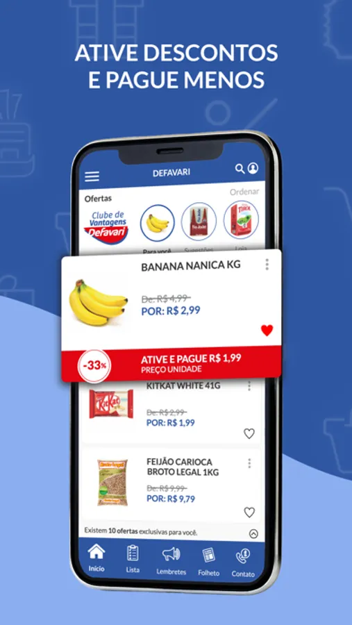 Viu quantas vantagens? Comece a aproveitar tudo isso, fazendo o download gratuito do aplicativo Supermercado Defavari.Com nosso app você recebe e ativa descontos, compartilha e concorre a brindes.