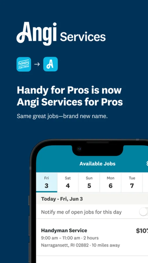 Handy for Pros is now Angi Services for Pros. You will have access to the same great jobs and features under a brand new name.