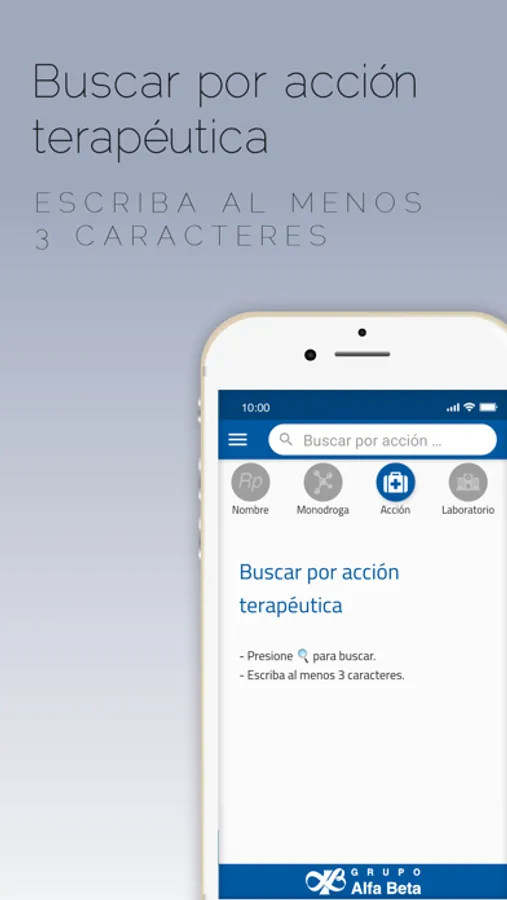 Este vademécum desarrollado por GRUPO ALFA BETA contiene la siguiente información de los distintos productos medicinales: laboratorio, drogas, clases terapéuticas, composición, acción terapéutica, indicaciones, posología, presentaciones y clasificación ATC.