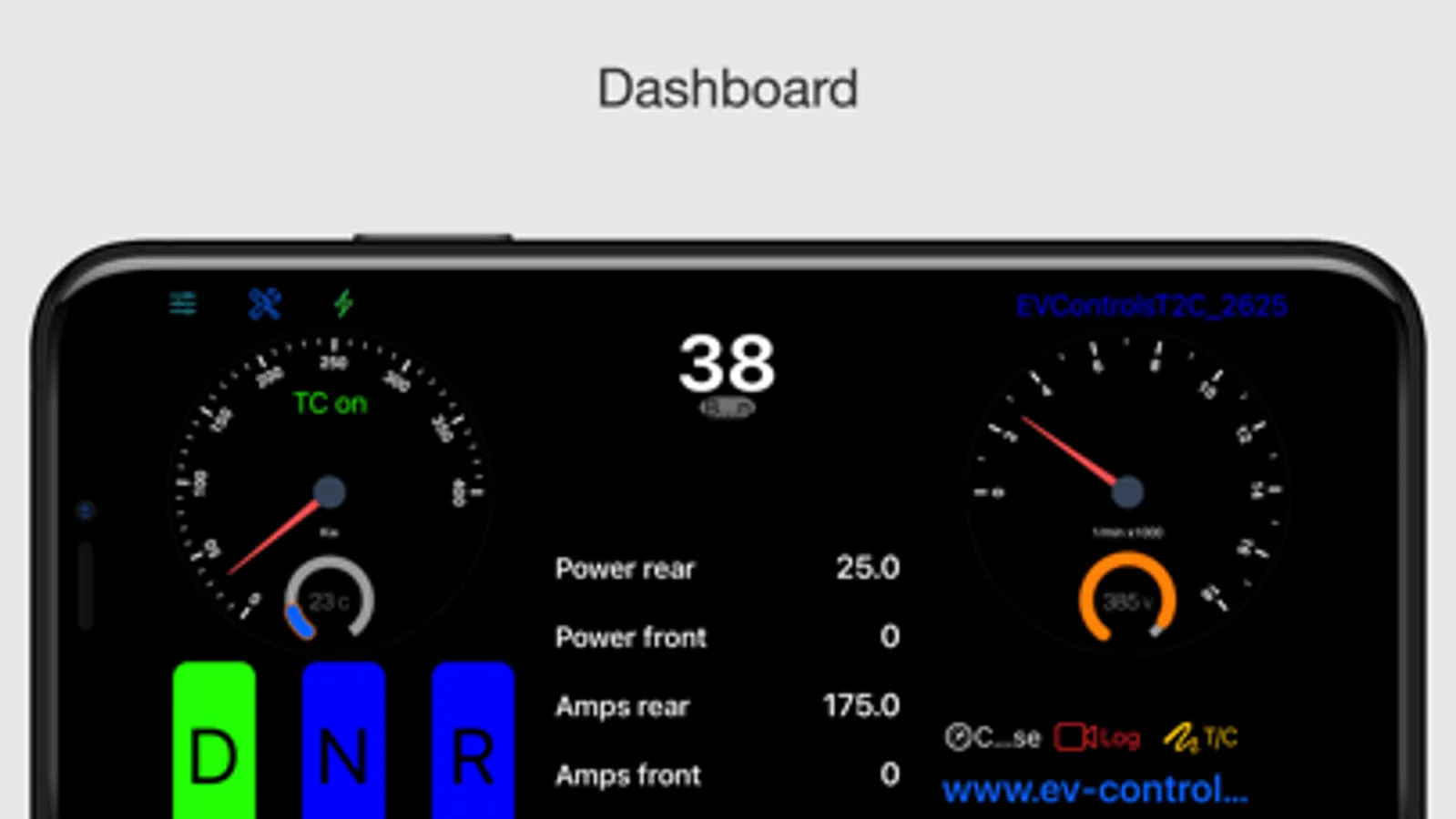Dashboard app to use in conjunction with EV Controls T2-C controllers for Tesla drive units. See www.ev-controls.com for details.