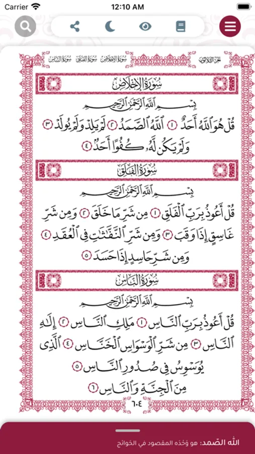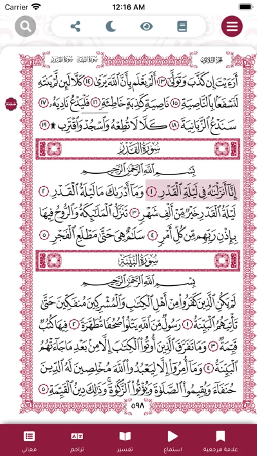 * يحافظ البرنامج على الشاشة مضاءة لمن يريد مواصلة قراءة الآيات لفترات طويلة.