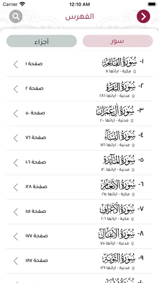 * المرجعية : فهرس السور ، فهرس الأجزاء ، والقدرة على الانتقال إلى أي صفحة عن طريق رقمها.