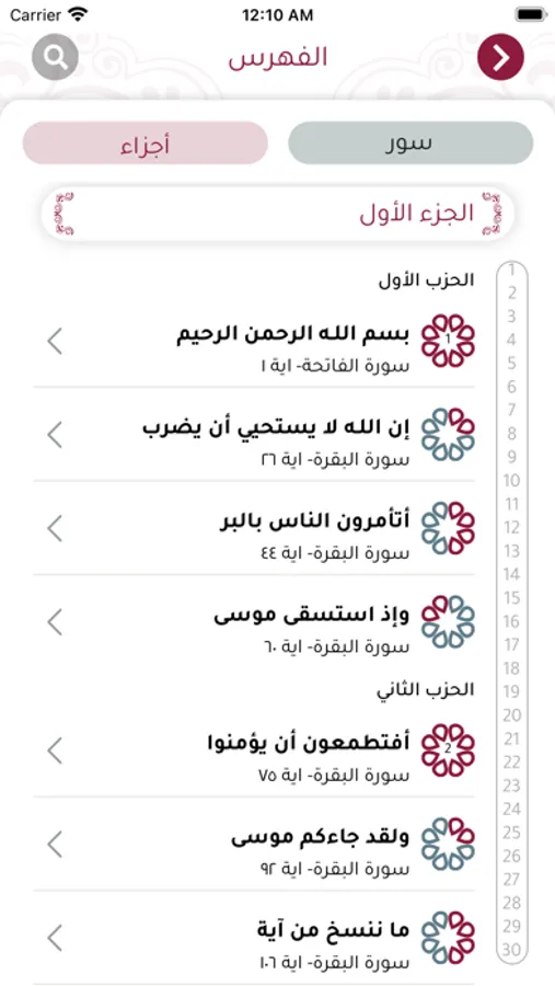 * امكانية وضع علامة مرجعية على آية أو أكثر والذهاب اليها مباشرة من القائمة.