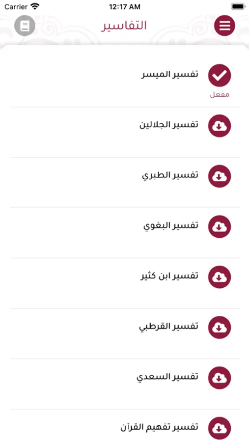 * يوفر التطبيق أهم كتب معاني كلمات القرآن وكتب التفسير سواء كانت مختصرة أو موسعة وربطها مباشرة بالآيات لسهولة استخدامها. مثل: (التفسير الميسر، تفسير القرطبي، تفسير ابن كثير تفسير الطبري، اعراب القرآن و غيرها)