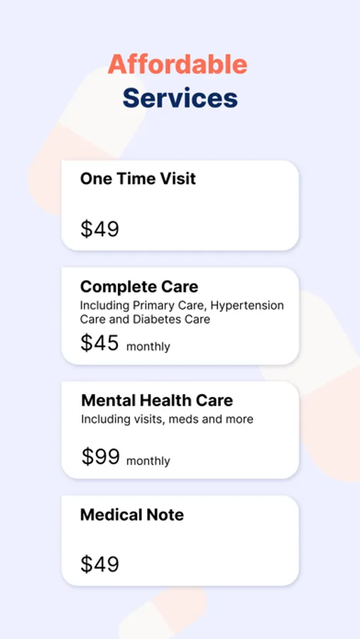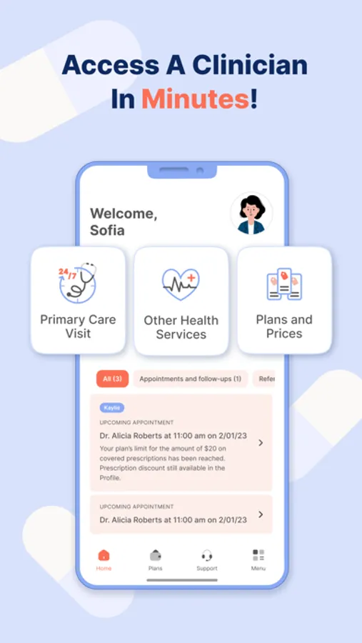 Get a virtual clinician, on demand, whenever, wherever you are, even without health insurance! The platform offers telehealthcare services that will let you see a teledoc online easily. Our clinicians, psychiatrists, and psychologists are experienced and will provide you with quality healthcare from the comfort of your home. Any of our on-demand, medical professionals in our telemedicine app will be able to help you 24/7.