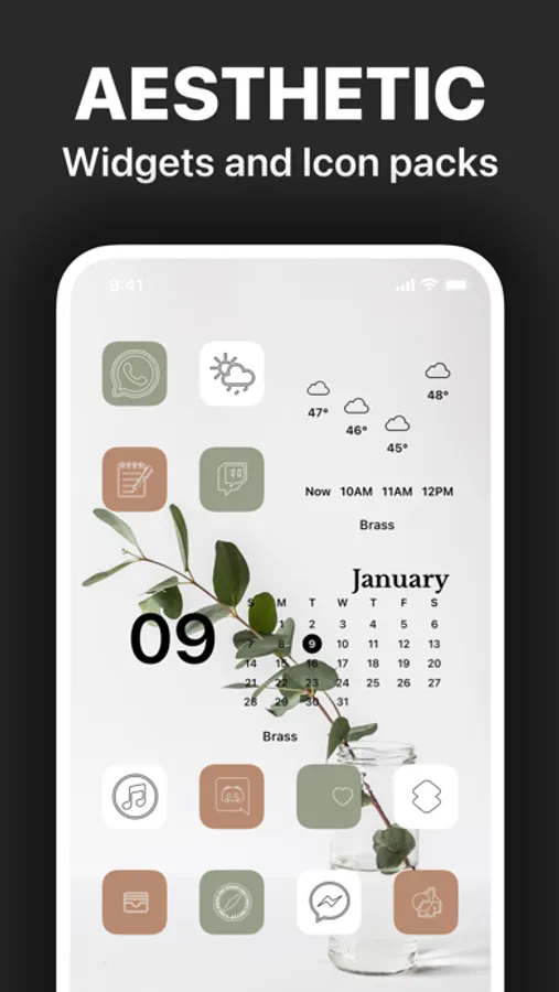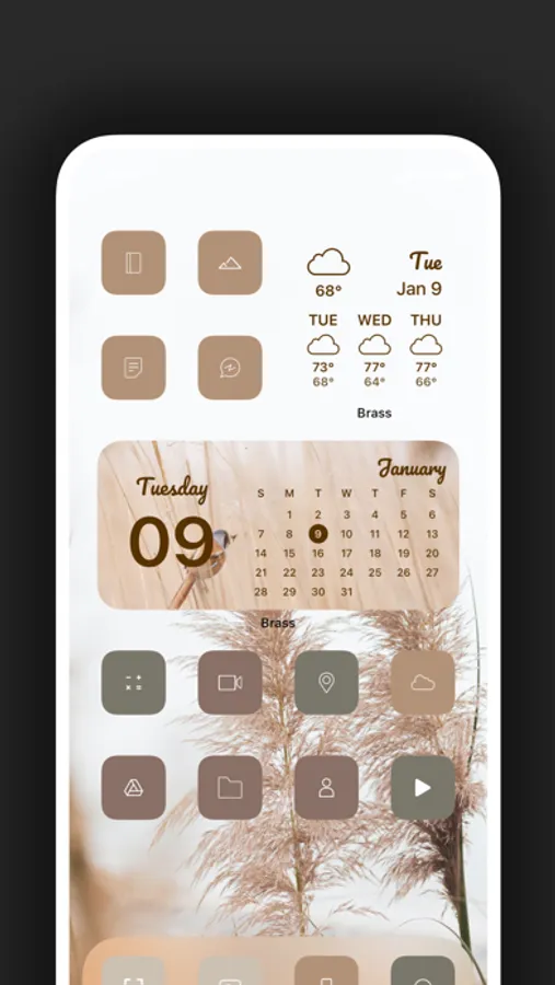 Bored of the usual style? Brass App is the solution. Customize your home screen with ease. Custom aesthetic icons, widgets, and themes!