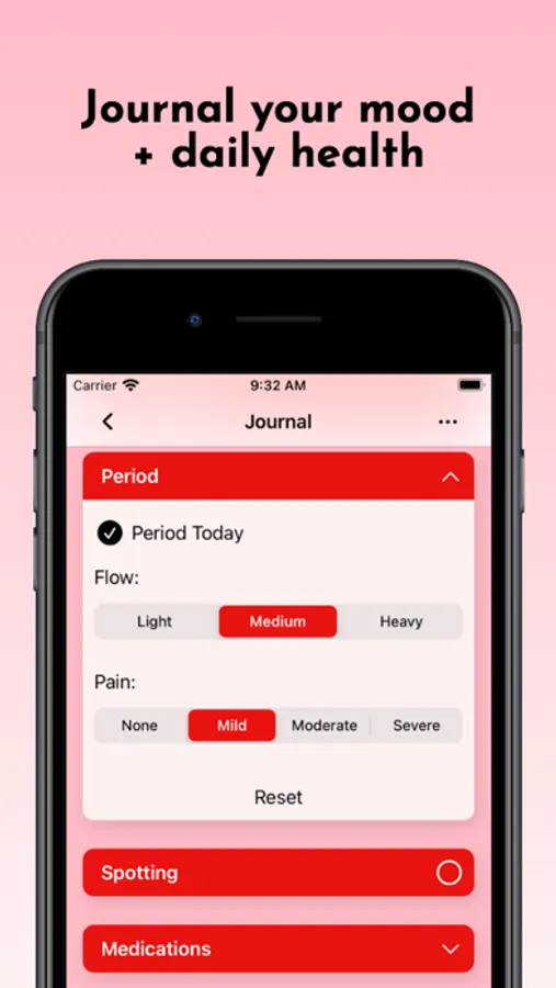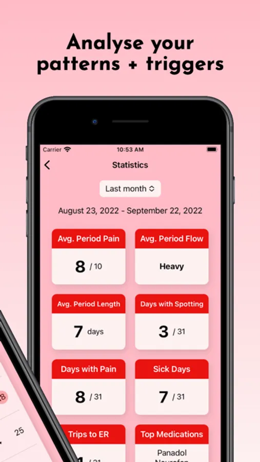 Record your health and symptoms into a daily journal for helpful insights into your cycle patterns, pain scores, triggers, and more.
