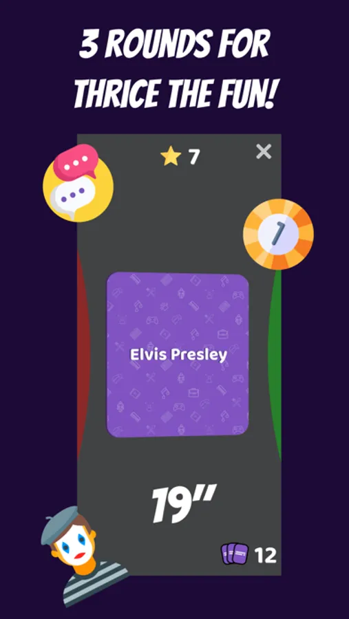 - Finally, during the third and final round, you will have to mimic the content of the card displayed on the screen, and your teammates will have to guess what it is!