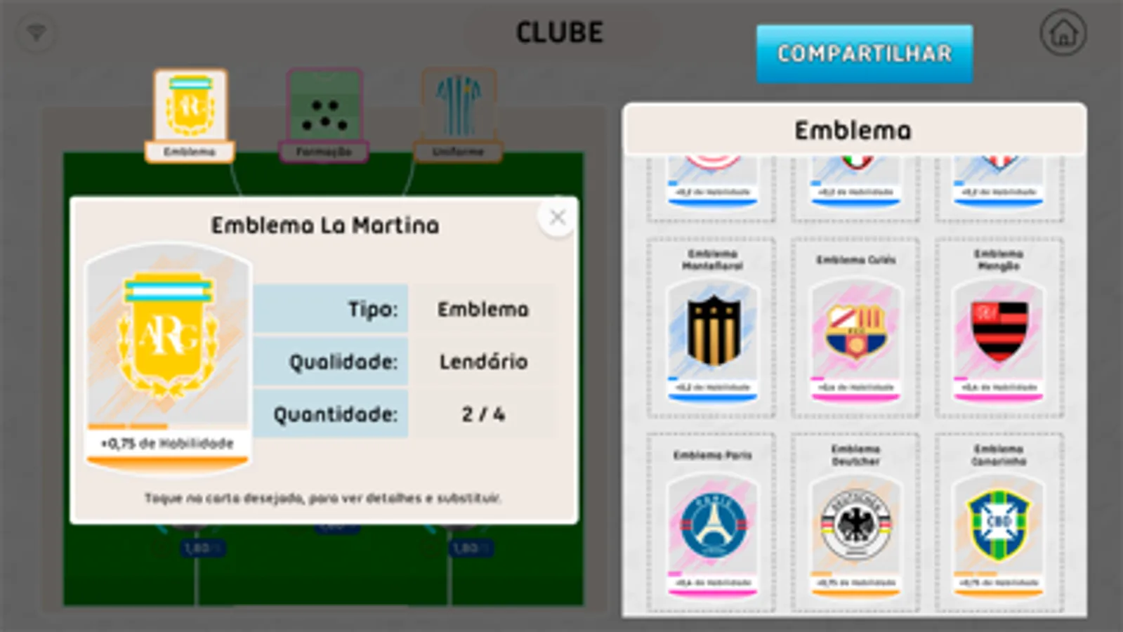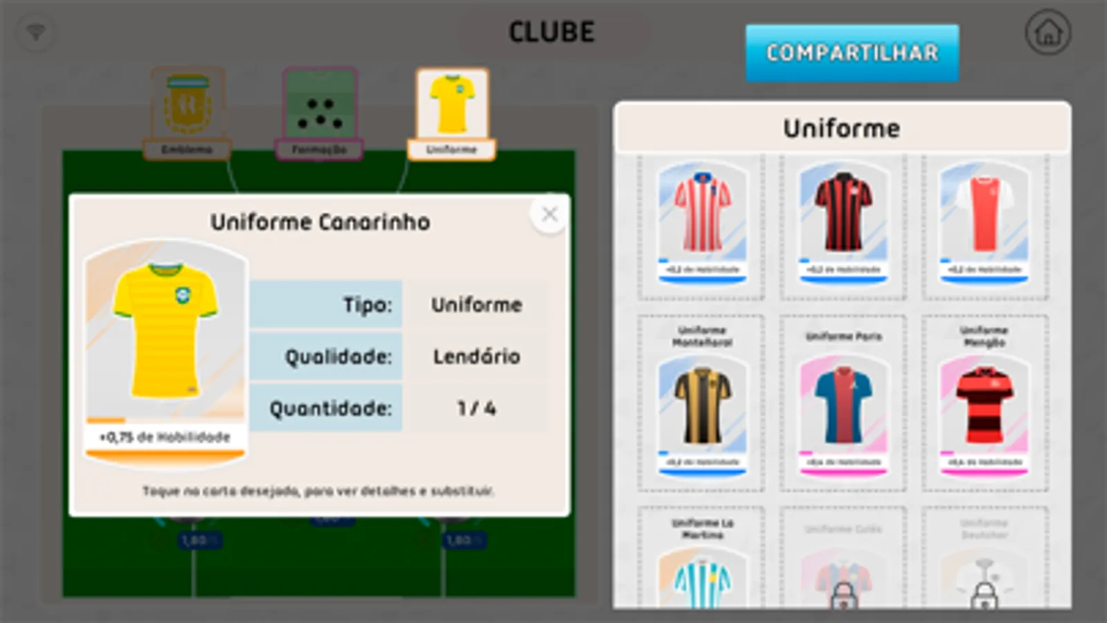 Comece agora mesmo a abrir pacotes e colecionar cartas como uniformes, emblemas, formações, números e habilidades, com isso você pode personalizar seu clube e cada jogador do seu time.