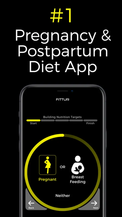 The Fittur pregnancy and postpartum diet app guides your nutrition during pregnancy. Balances your nutrition during the critical breast feeding stage. Then helps you transition to your ideal body composition after pregnancy. You can even transform your app into a life long calorie counter and macro tracker.