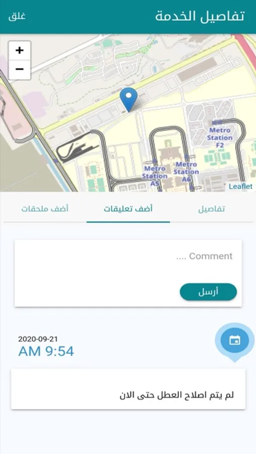 Users can type a description of the request, and enter a location for the request. They can also view the requests that they created that are currently unresolved so that they can follow up on those requests.