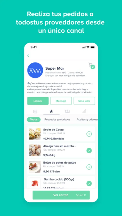 Envía tus albaranes por WhatsApp al 722 568 914. Nuestro equipo EXUM creará en 24-72h las tiendas de tus proveedores con los productos y precios que nos envíes. Una vez activados tus proveedores, estos aparecerán en la sección ‘Mis Proveedores’ y ya podrás realizar todos tus pedidos manteniendo tus condiciones de compra: Días de entrega / Pedido mínimo / Cierre de pedidos.