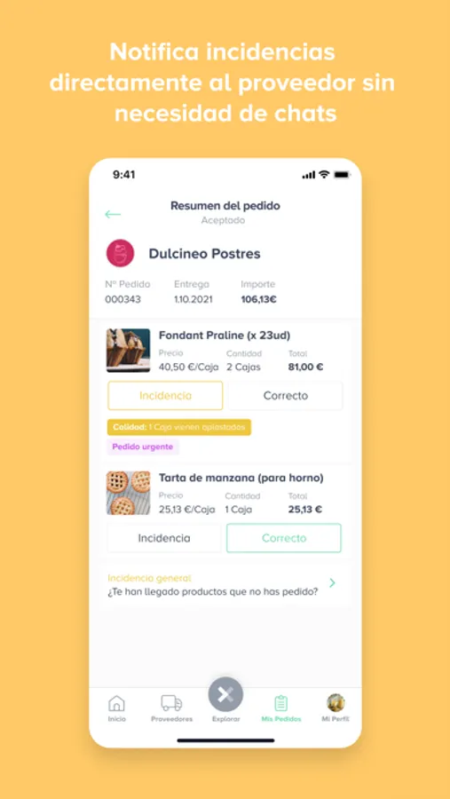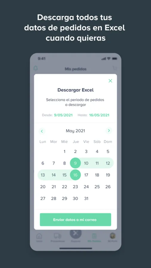 Podrás compartir todos tus pedidos por WhatsApp al comercial y/o proveedor directamente desde tu móvil. Así, puedes asegurarte que tu pedido llegará donde tú elijas. Compartas o no, a tu comercial siempre le llegará por correo electrónico.