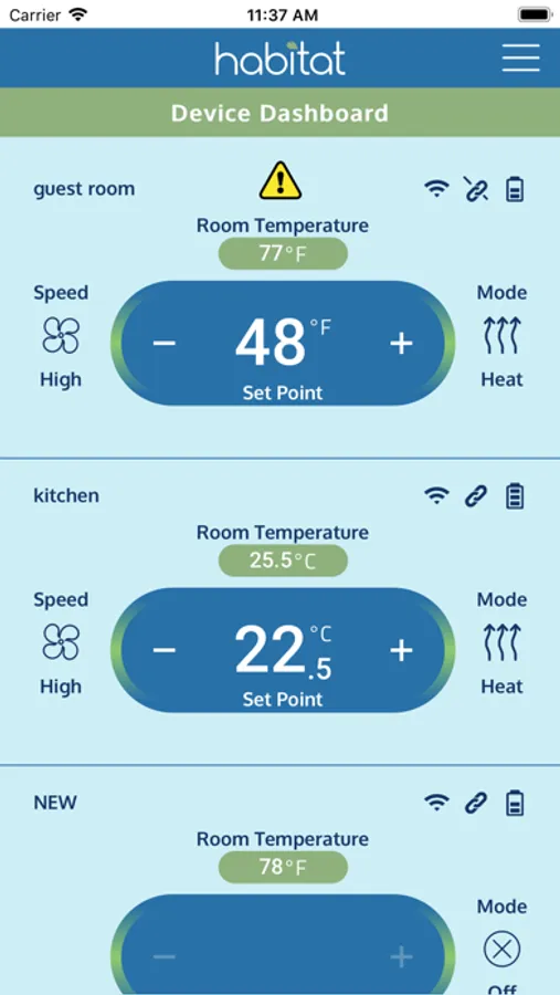 The Habitat HomeLink App provides an intuitive interface that allows users to monitor and control their HVAC systems.