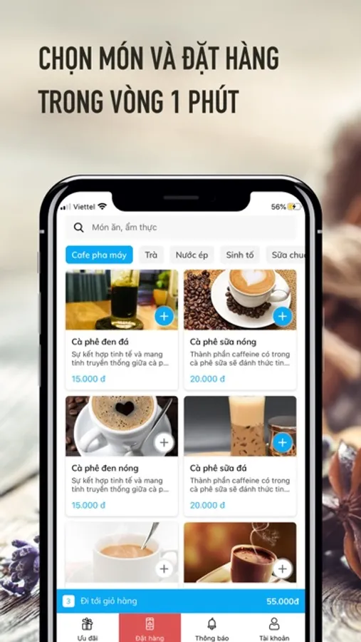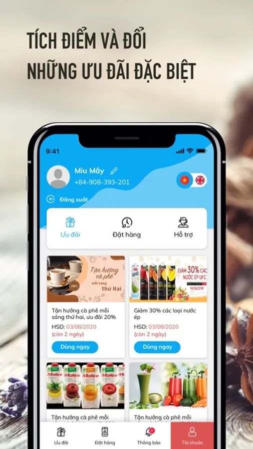 Khách hàng nhận các ưu đãi, mã giảm giá dành riêng khi đặt hàng trên ứng dụng. Chỉ cần 1 phút thao tác khách hàng có thể thực hiện xong đơn đặt hàng. Khách hàng tận hưởng dịch vụ giao hàng tận nơi, tối đa 30 phút.
