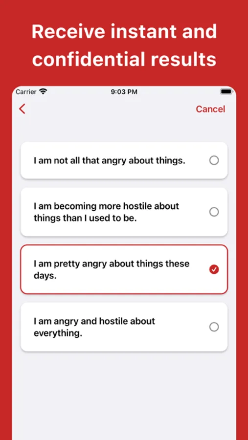 This test can help you determine if you are experience minimal, mild, moderate, or severe levels of clinical anger.