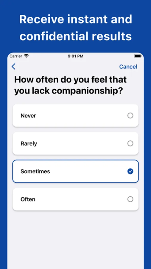 Evaluate your loneliness level with a validated questionnaire.