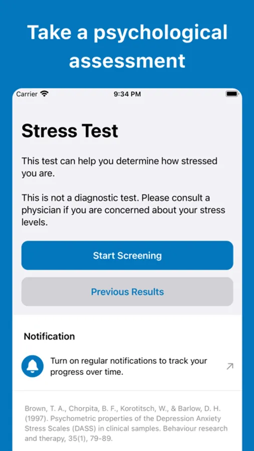 Brown, T. A., Chorpita, B. F., Korotitsch, W., & Barlow, D. H. (1997). Psychometric properties of the Depression Anxiety Stress Scales (DASS) in clinical samples. Behaviour research and therapy, 35(1), 79-89.