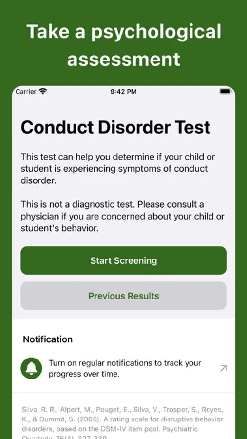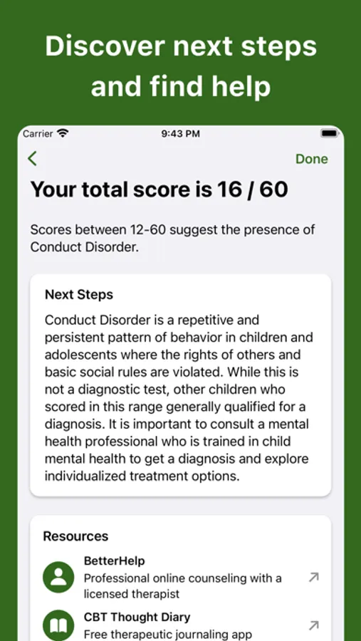 Disclaimer: This test is NOT a diagnostic test. A diagnosis can only be provided by a qualified healthcare professional. Please consult a physician or mental health professional if you are concerned about a child's mental health.