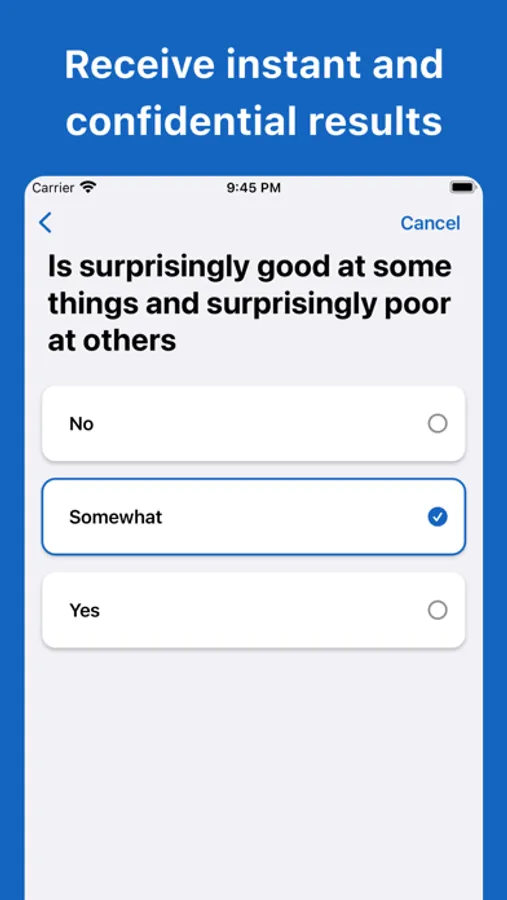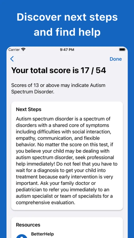 Disclaimer: This test is NOT a diagnostic test. A diagnosis can only be provided by a qualified healthcare professional. Please consult a physician or mental health professional if you are concerned about a child's mental health.