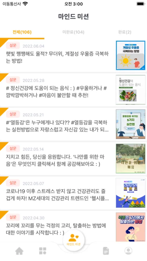 - 정신건강에 대한 정보를 글과 이미지, 카드뉴스, 동영상 등 다양한 콘텐츠로 만날 수 있습니다.