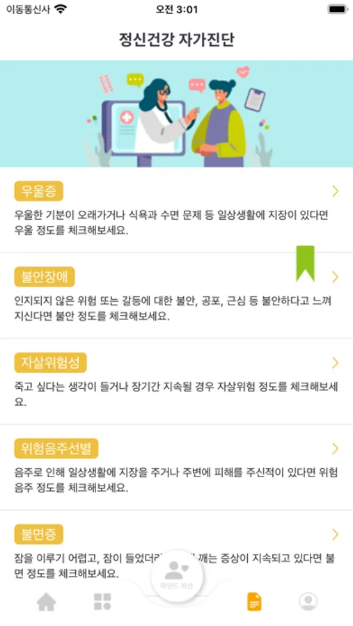 1. 정신건강 자가검진 및 결과 확인