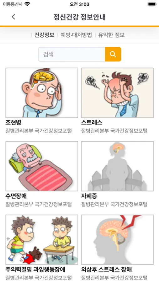 - 정신건강 질환에 대한 건강정보를 확인할 수 있습니다.