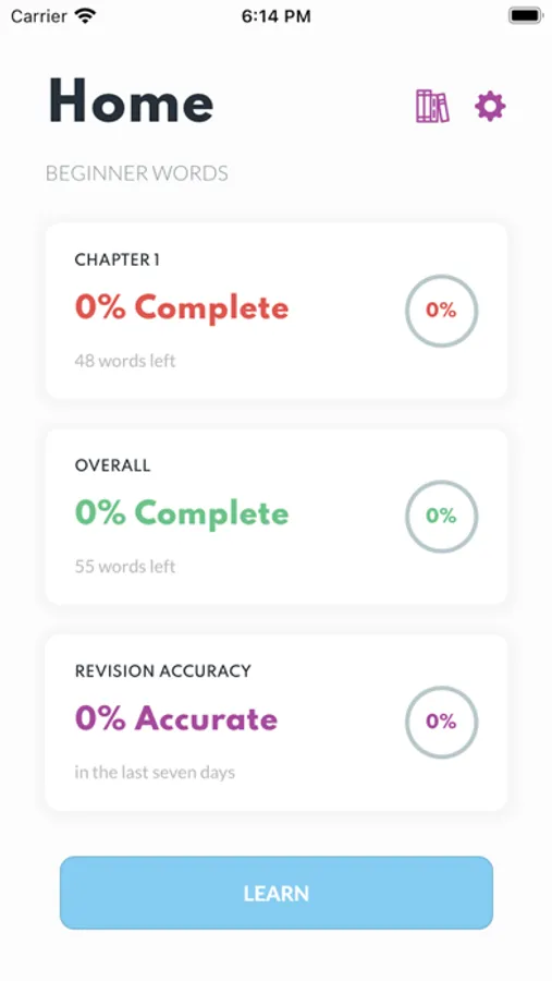 You can learn new words in our Learn page, and then Revise them in our revise page. Revision of words is handled by a spaced repetition algorithm which ensures you always revise the most important words.