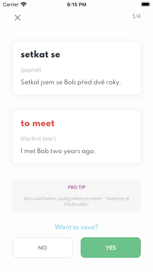 BE AWARE - This app is currently only for Czech natives! Each English word has a fantastic Czech translation, with examples sentences in both languages and a pro tip for each word.