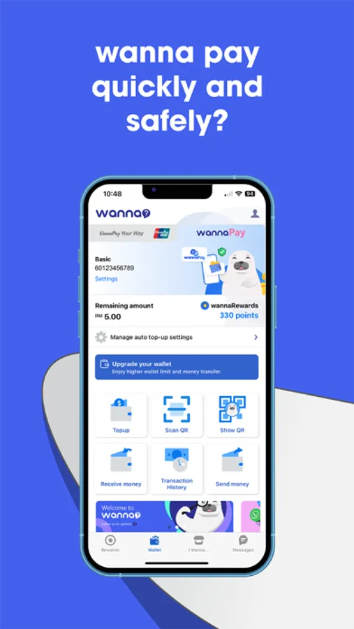 • Reloading wanna eWallet is easy – support FPX and you can also use any of your bank debit/credit cards and even with a UnionPay card.