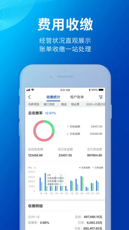 为商业管理赋能,全链路节点管理,各版块功能交互贯通,联通项目、招商、运营、物业、人事部门管理工作,CRM管理和O2O管理赋能企业商业运营,前端可视化提供管理成果,企业辅助决策系统为下一步决策提供指导依据