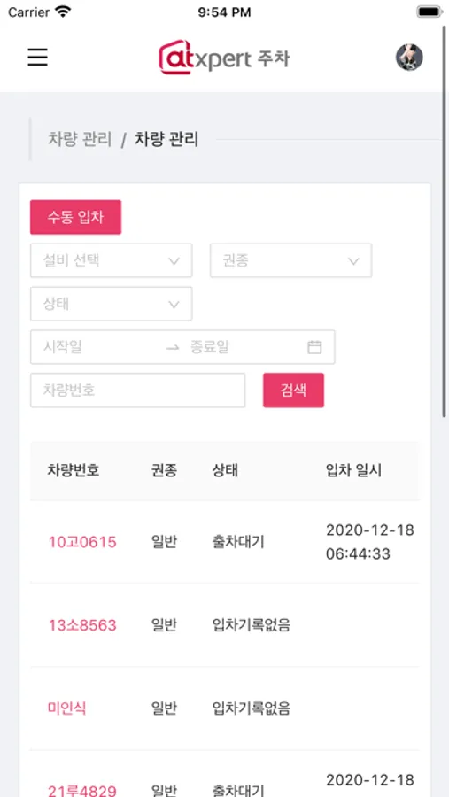 엣스퍼트 주차관제 - 관리자 Screenshots