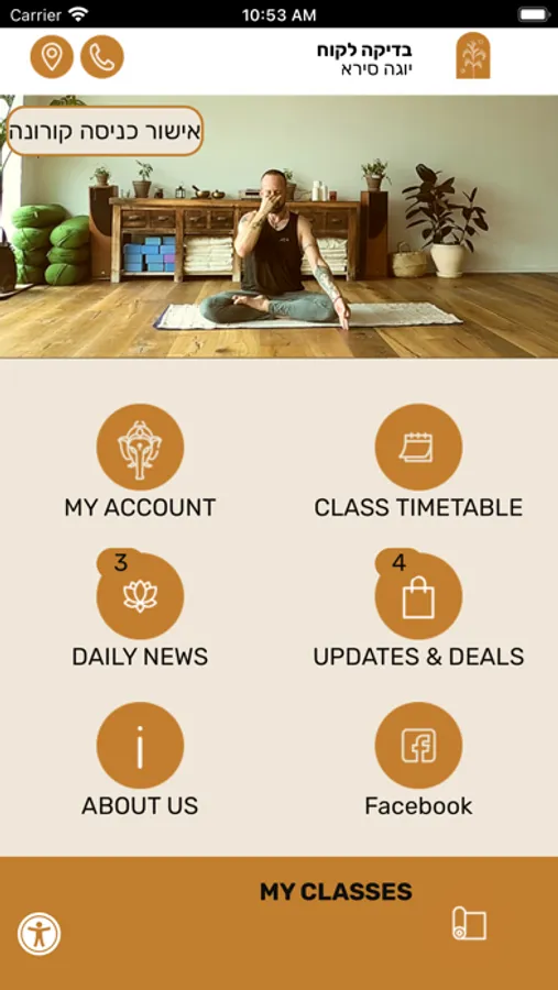 אפליקציית סירא יוגה בפלאפון – כך תוכלו להירשם לשיעורים, להתעדכן על סדנאות, החלפות של מורים ואירועים מיוחדים, ולנהל את החשבון האישי בסטודיו (מעקב אחר כרטיסיות, רכישות בחנות ולהמשיך להיות איתנו בקשר