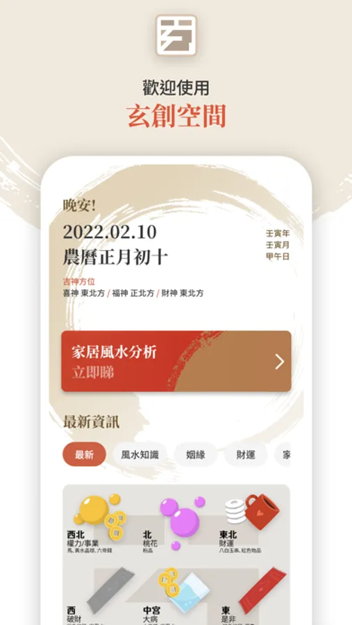玄創空間是一個融會玄學術數及數碼科技的風水APP。透過家居平面圖、坐向、外圍環境等,即時分析家居風水。配合清晰畫面,準確掌握單位風水吉位,助你提升運勢!