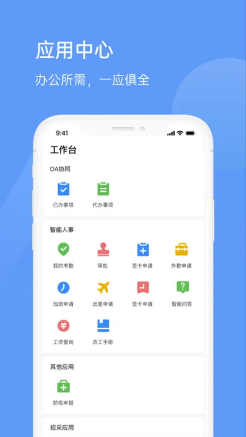 员工考勤、假单审批、薪酬查询、智能问答等应用;