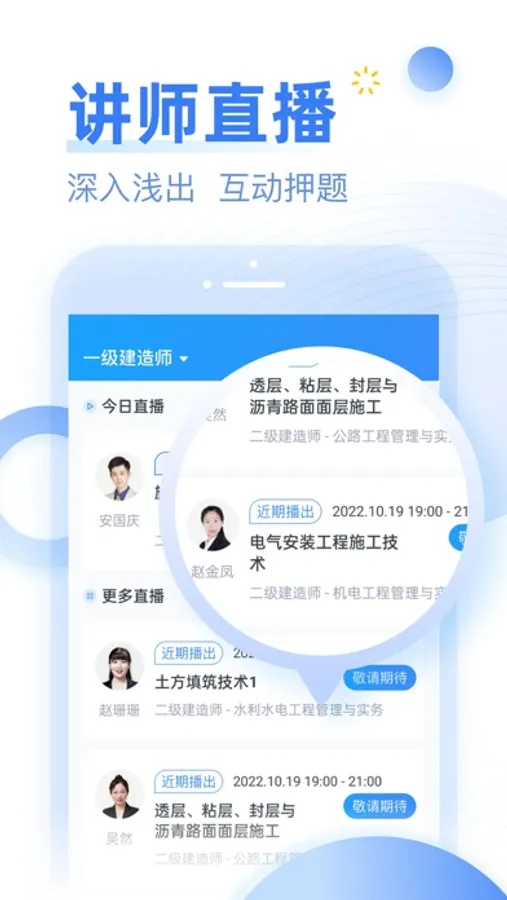 2、名师直播:深入浅出,互动押题,快速掌握自学考点,业内讲师划重点讲解押题;