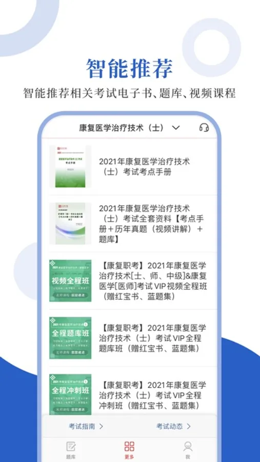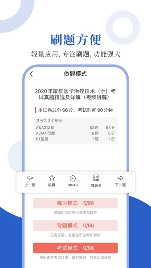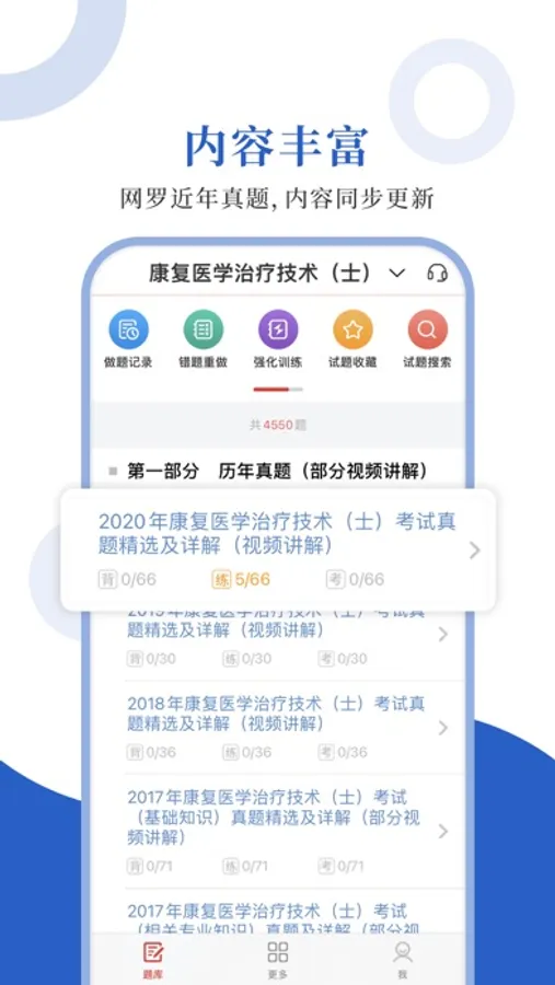 专为康复医学治疗技术考试精心准备的考试配套题库,每一道试题都有答案解析,为考试提供了充分的复习准备,可随时随地学习练习,支持手机、平板多端同时使用。