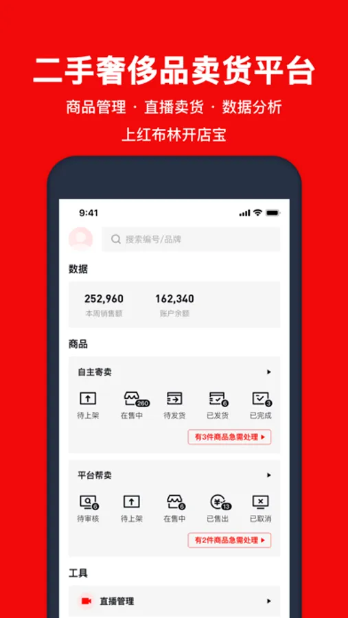 红布林开店宝是为二手奢侈品商户量身打造的管货、卖货平台。