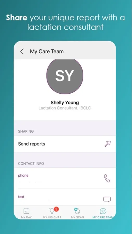 Add a care contact, and SHARE your unique PDF REPORT with lactation consultant or other care provider. Feature leverages Apple's CareKit framework for PDF report generation and sharing.
