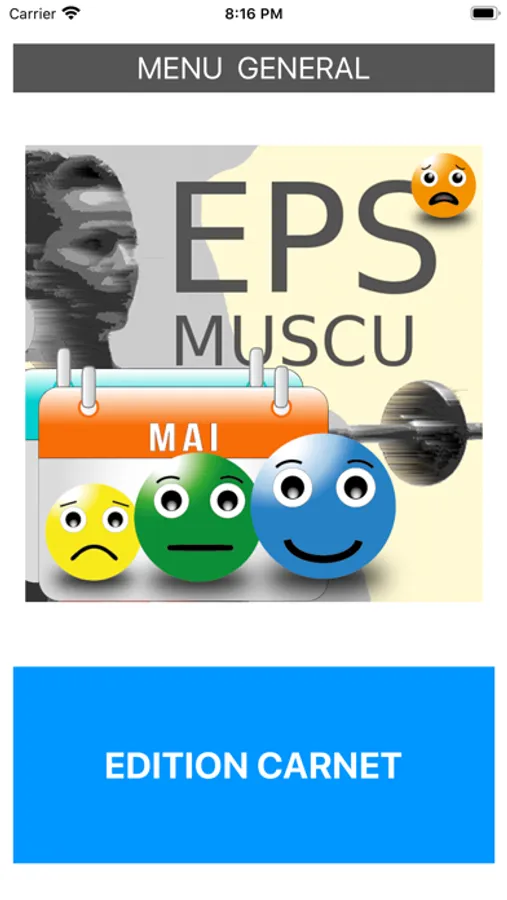 « EPS Carnet Muscu » en complément de l’application « EPS Muscu » permet ainsi une pratique adaptée, sécurisée et encadrée de la musculation, avec une lisibilité accrue du parcours d'entrainement et le maintien d'une plus grande communication entre l'enseignant et ses élèves. Elle s’avérera ainsi, aussi bien utile aux professeurs d’EPS (dans le cadre notamment du champ d’apprentissage N°5), aux étudiants en STAPS, mais également à tous ceux qui désirent pratiquer la musculation, avec un suivi des entrainements. A des fins d’illustrations pour une meilleure compréhension, certaines images ont été extraites de vidéos réalisées en 3D par l'université de Lyon1 sur sa chaîne YouTube : http://www.youtube.com/user/Anatomie3DLyon.
