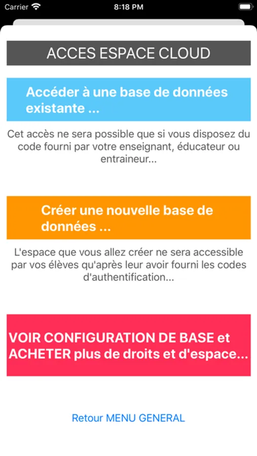 Ce carnet peut être stocké directement sur son iPhone ou iPad (nombre d'élèves et séances illimité), ou sur le cloud pour le partage (nombre d'élèves et de séances limité en fonction du type d'abonnement choisi...)