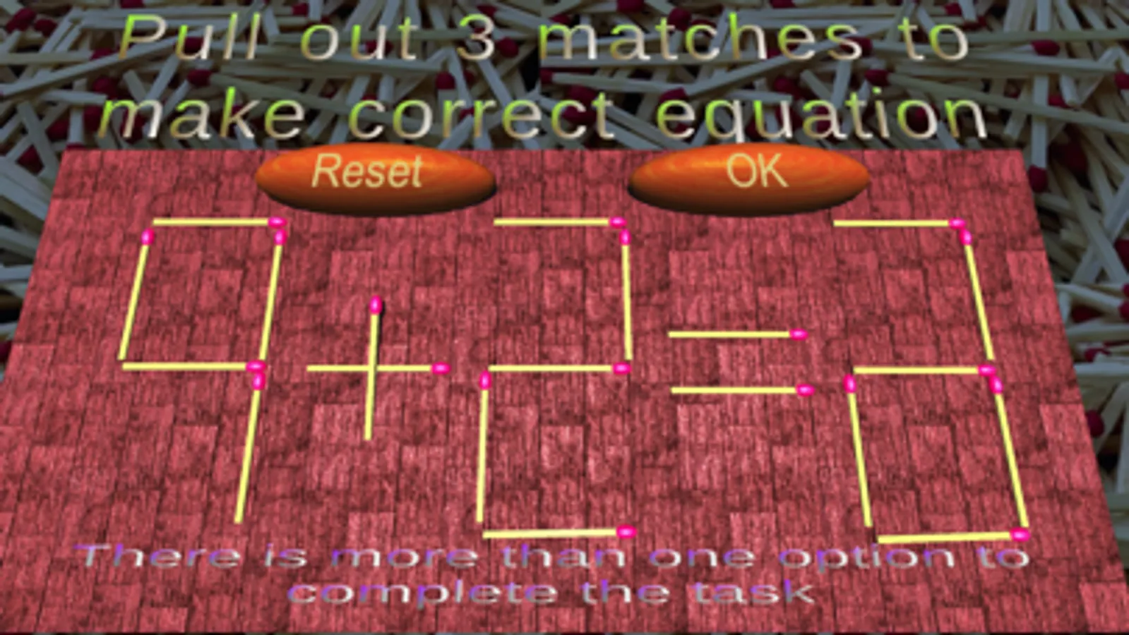 Solve matchstick simple math puzzles by moving matches until you find the right solution.