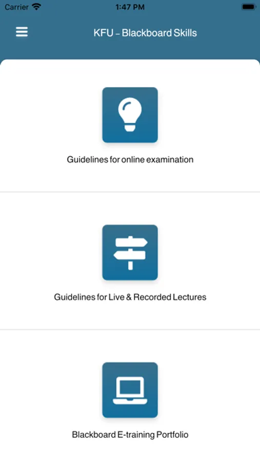 حرصت عمادة التعلم الإلكتروني والتعليم عن بعد على توفير أدلة إرشادية وحقائب تدريب إلكترونية لأعضاء هيئة التدريس تقدم أدلة إرشادية خاصة بإدارة المحاضرات عن بعد وأدلة إرشادية خاصة بتجهيز وإعداد وعقد وأداء الاختبارات والواجبات الإلكترونية، وأدلة أخرى تقدم شرحاً وافياً لكافة النشاطات والمهارات الأساسية لاستخدام منظومة Blackboard.