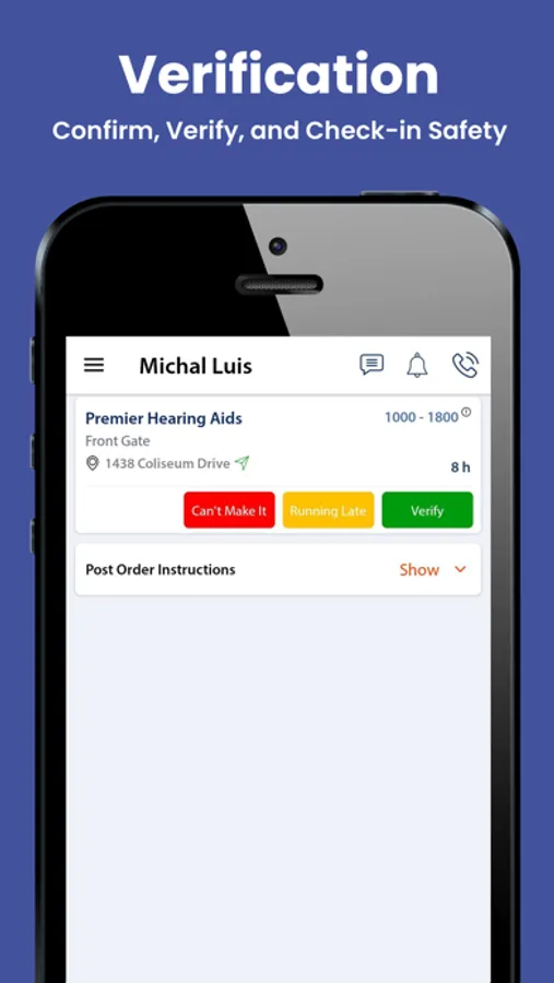 StaffWizard utilizes a special algorithm developed by our engineers that determines if a replacement is needed. The guard's current location is shown while they are in the app as well as the distance from their assigned post. If the time it would take for them to get to their destination exceeds the specified time they were assigned to be there preemptive measures are taken by releasing the guards shift making it available for pickup.