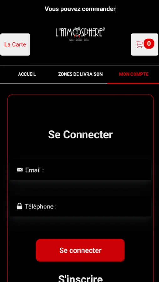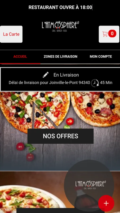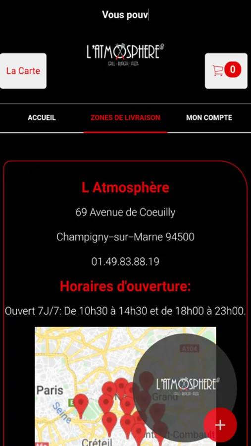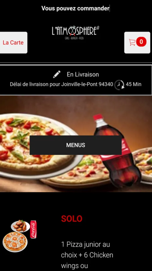 L'application L Atmosphère vous permet de commander en ligne ou par téléphone via votre application. Vous pouvez consulter notre carte et choisir vos produits.