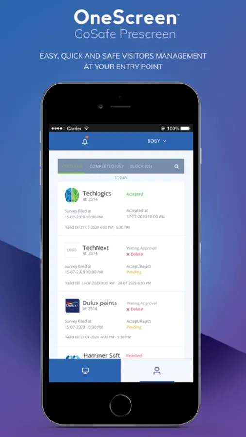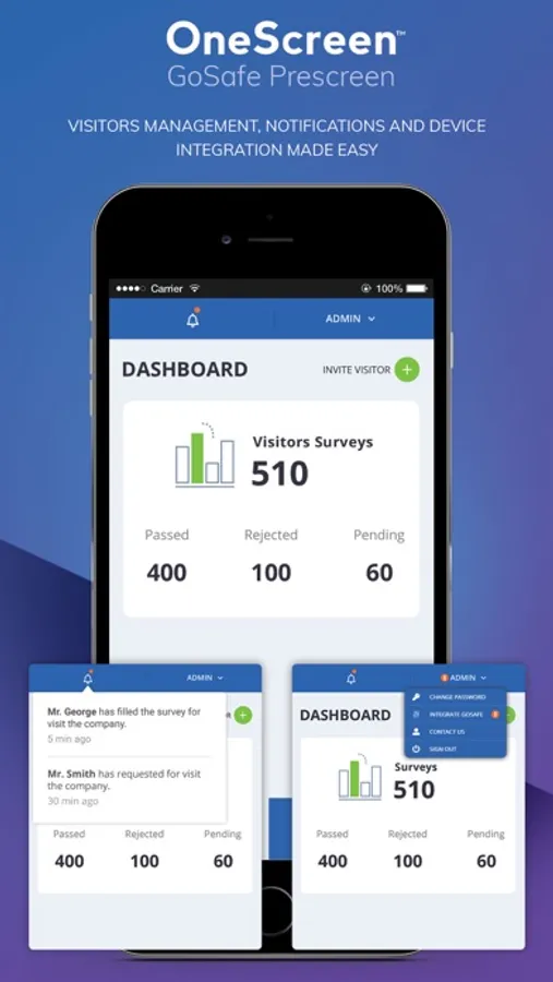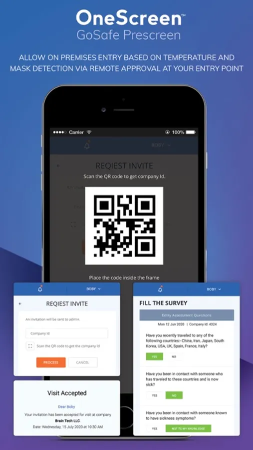 OneScreen GoSafe Prescreen works with the GoSafe temperature scanner to better manage and monitor visitor entry. By completing a short survey and providing an image, prior to attempting access, visitors will experience a quick and easy entry when they arrive.