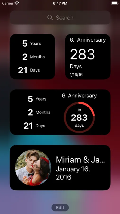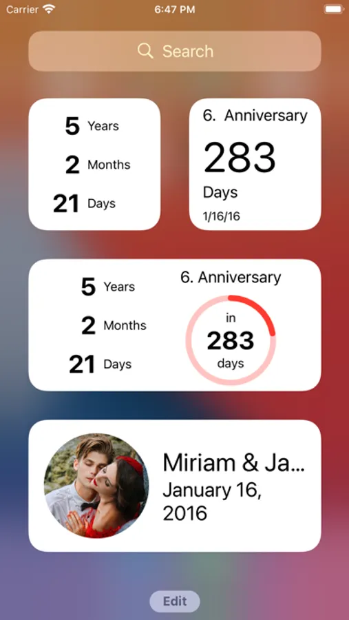 In Bloom you can illustrate your relationship in numbers. You will see the past years, months and days, as well as pictures of you two. Includes awesome Widgets for you home screen and lock screen!